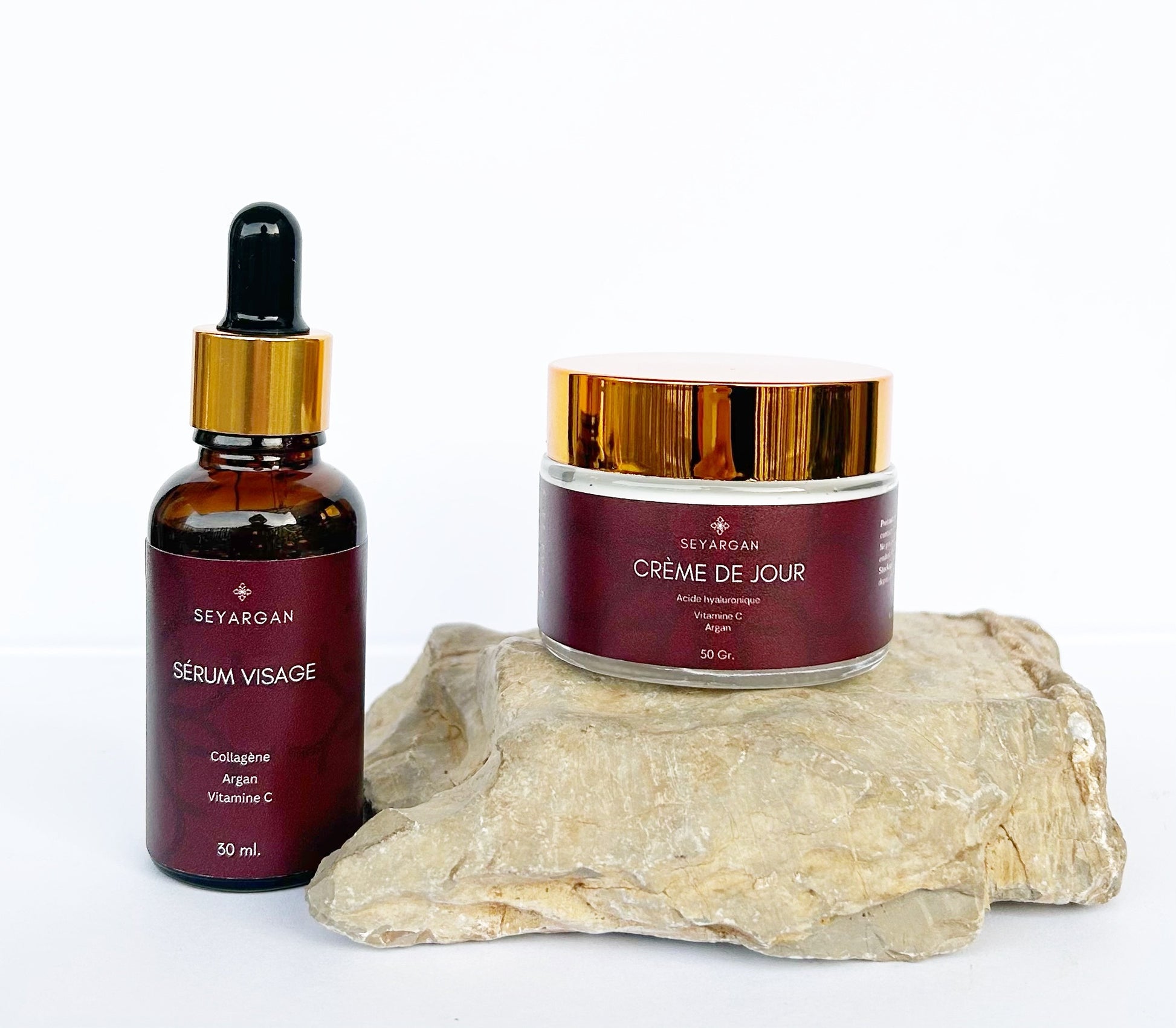 Appliquer sur le visage matin et soir le sérum puis la crème.